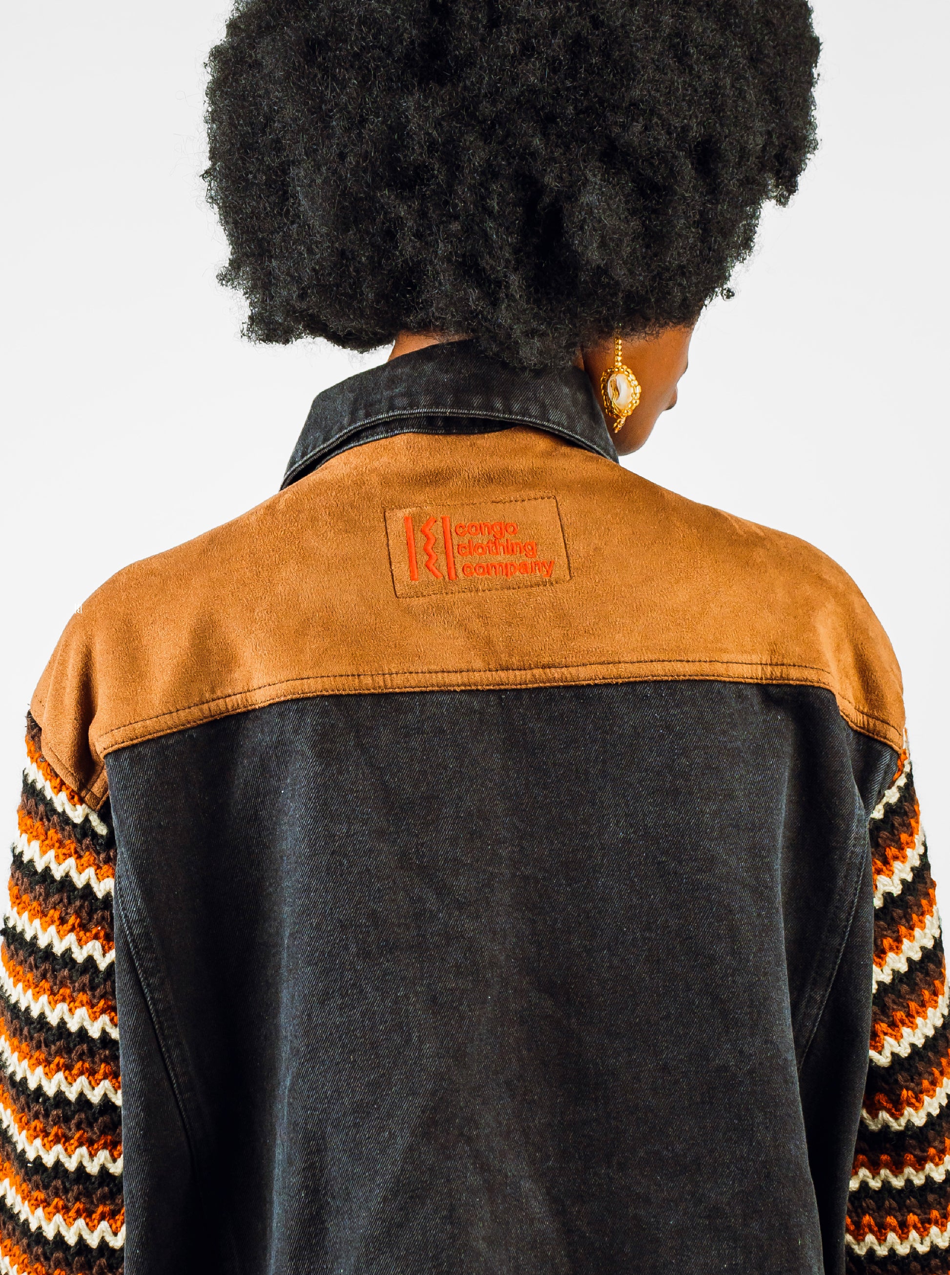Designed with a relaxed fit, the jacket is finished with contrasting brown accents, Kuba-inspired sleeves, and our signature CCC woven label.